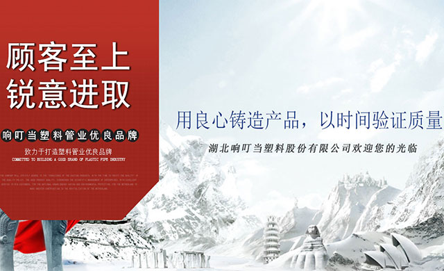 湖北响叮当塑料股份有限公司创建于2003年,是一家集塑胶管道系列产品的生产、研发、销售、技术咨询与技术服务于一体的高新技术企业。占地面积11000平方米,总资产1000万元,年生产能力3000吨,实现产值4500 万元。公司生产的绿色环保建材—“响叮当”牌给水用PP-R管道系列产品规格为20mm—160mm10个系列四个压力等级,并生产出200多种管材配件,PVC系列产品有PVC-U实壁管材,管件,实壁螺旋消音管材,管件,PVC阻燃冷弯电工套管材,管件,100级PE给水管材管件。